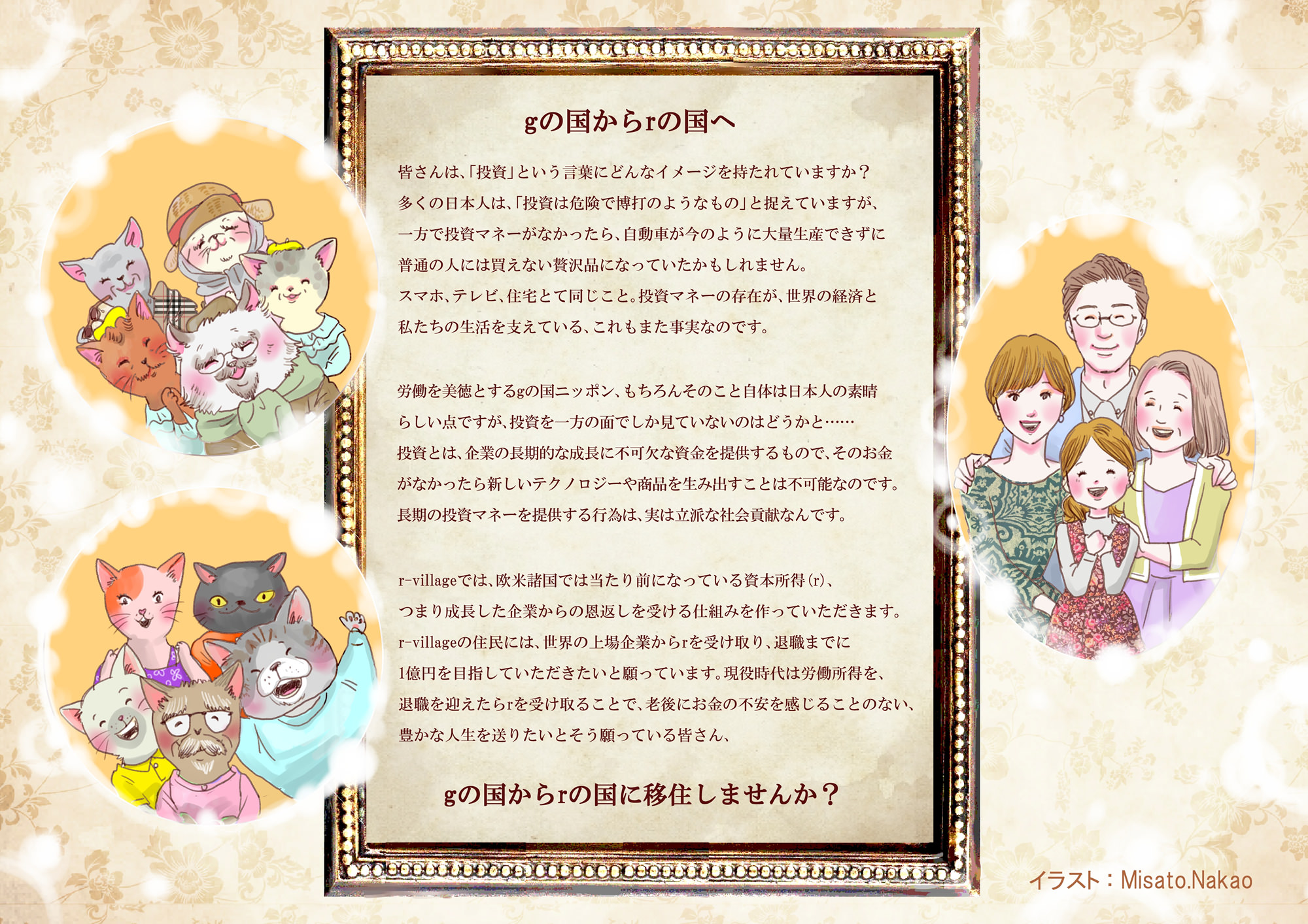 時間と知恵を活かし1億円の資産を築く、本当の資産運用を学び・考え・実行する仲間が集う場所。それがr-village(アールビレッジ)です。